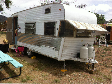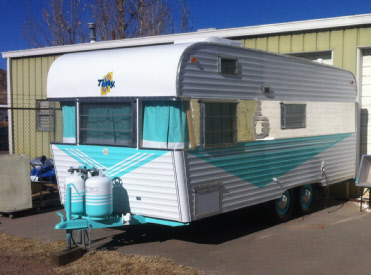 I love projects like this, trailers that inspire me. This is a 1965 Terry Compass that came in for a facelift. Basically it was a solid, usable trailer except some leaking around the curved front windows, a problem area but they look so cool! It also had an amateur paint job by a previous owner, 50 years worth of minor dents and the new owner wanted it to look a little better, so she brought it to us for one of our "face lifts".