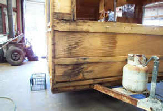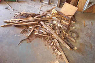 Sure enough, once we pulled the skin it did have considerable amount of water rot to the structural framing... the pile to the left was parts that literally fell off as we took it apart. No problem for Retro, we rebuilt all the wood structure and only had to replace a couple of interior panels, and of course we added new insulation before new skin matching the original pattern.