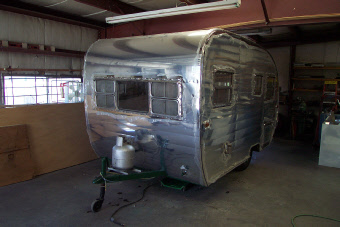 Great start for a vintage camper restoration. Very complete trailer, but about 25% of the interior paneling had water damage, which we repaired as usual.