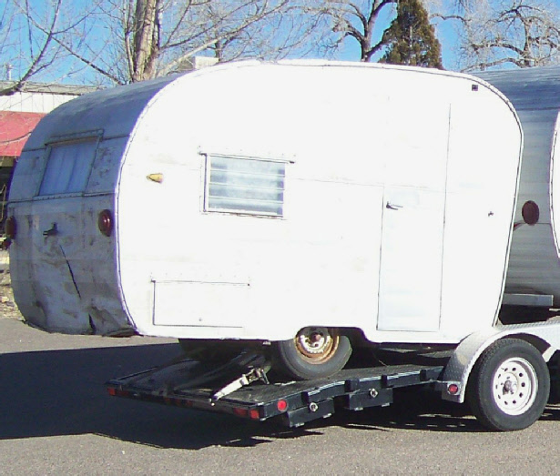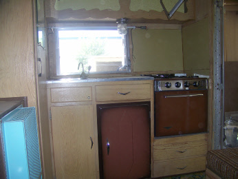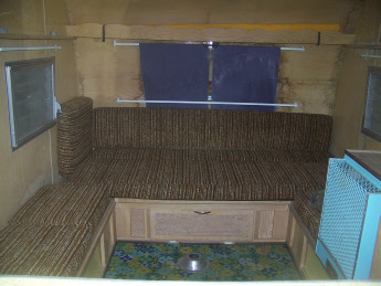 At Retro Restoration we have a "boneyard" of trailer projects available. This owner picked out this poor little Shasta Compact to have us restore it to their choice of colors and style. A previous owner had started to restore it by stripping the paint off with the intent of polishing it, lost interest and it sat in his back yard for years. It had been wrecked in the back, looked like the tail had been dragged hard over something solid, the ceiling was caving in, and it was missing the upper cabinets. And the wings were gone! It had new upholstery... too bad it didn't fit the camper.