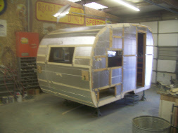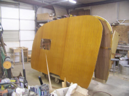 We refinished the birch interior in amber shellac, the owner liked it better than the original Shasta blonde finish. We built new "furniture" inside, reassembled the body, added new wiring, insulation and then all new aluminum skin.